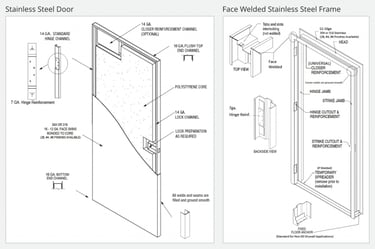Reinforcement Plates: Provided for hinges, lock, door closer, panic bar