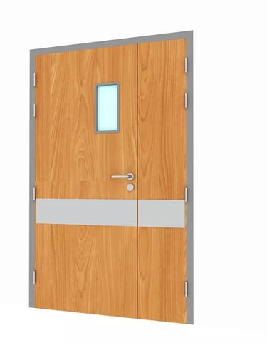 Glazed Fire Doors are specially engineered fire-resistant doors fitted with certified fire-rated glass panels. These doors provide fire protection along with visibility and aesthetic appeal, making them ideal for commercial buildings, hospitals, hotels, and offices.