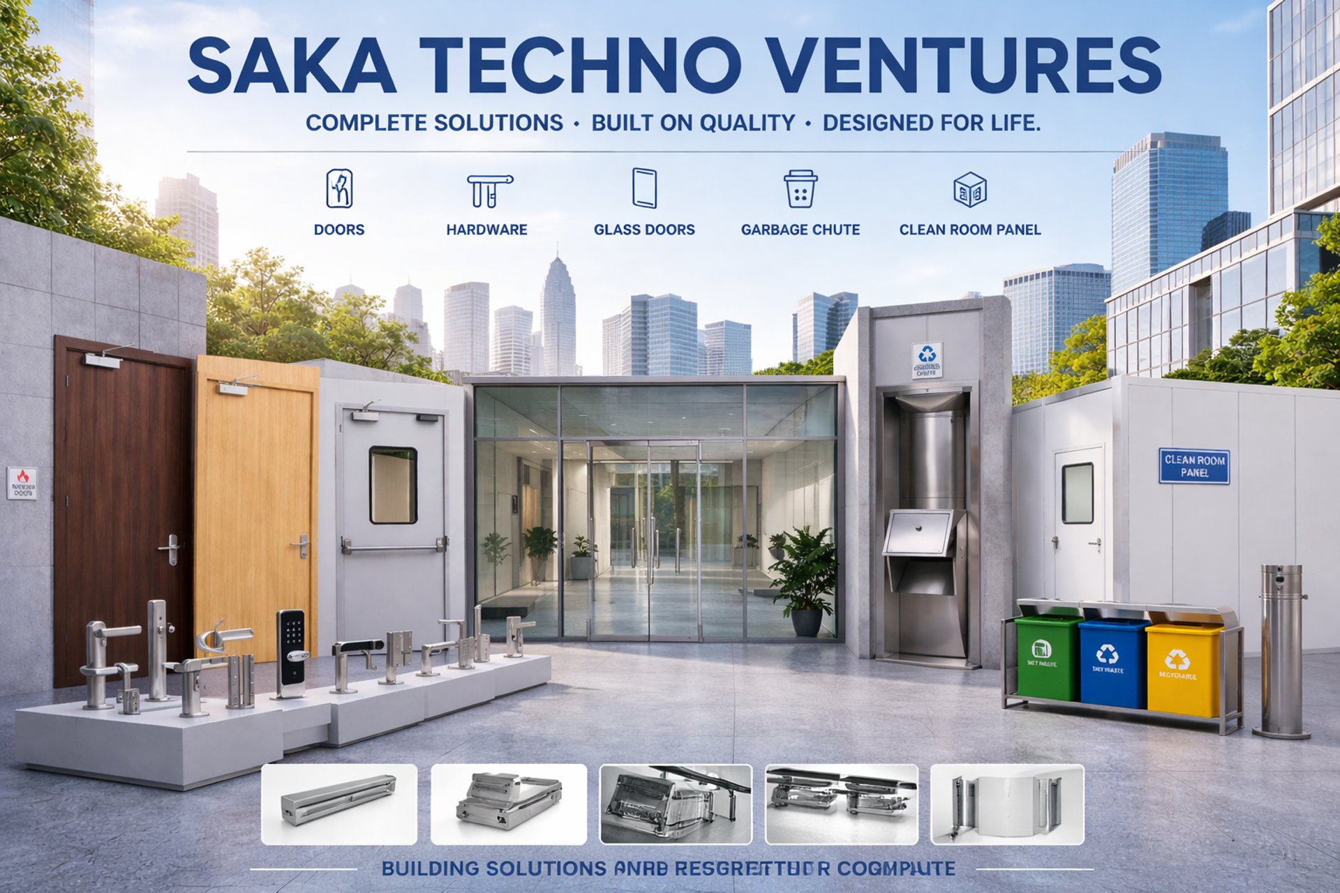 SAKA TECHNO VENTURES PVT. LTD. is a leading supplier and installer of high-quality Fire-rated doors Metal / Wooden / glass, Clean room doors, Garbage Chute Systems, Door Hardware & Ironmongery, AMC Services for Doors and Garbage Chute Systems and safety solutions in India.