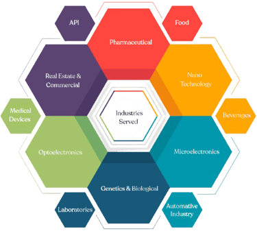 We serve diverse sectors including Pharma, Healthcare, Warehousing, Hospitality, Educational Institutions, Manufacturing, and Real Estate.